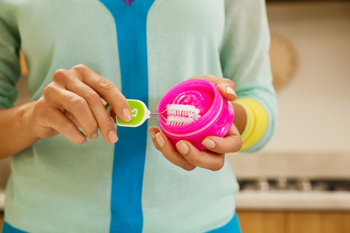 • Praktikus tárolókarika: A kefék egy praktikus karikára fűzve tárolhatók, így biztos nem vesznek el. A karika csúcsán található pöcök pedig megkönnyíti a poharakon esetenként található tömítőgyűrűk eltávolítását.