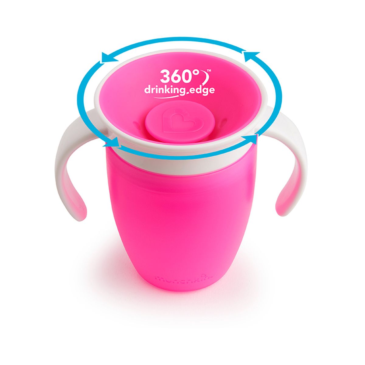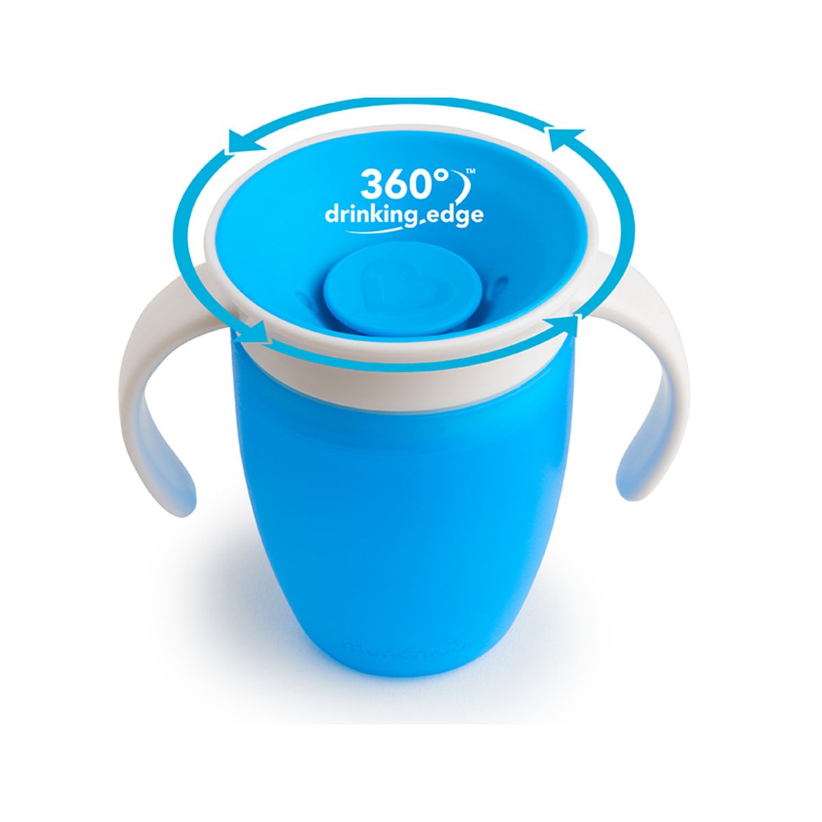 Képzelj el egy olyan világot, amelyben az italok egyáltalán nem lötyögnek ki, sem a gyermekre, sem a táskában. Ez nem egy csoda, ez a Munchkin Miracle® Cup 360°-os itatópohara. A pohár pereméről bárhonnan ihat a gyermek, mint egy hagyományos pohárnál, ezáltal segíti a száj normál izomfejlődését. Speciális szelepes teteje használat után automatikusan visszazár, így nem kell tartani a szivárgástól. És mivel nincsen ivócsőr, szívószál, vagy extra alkatrészek, a Munchkin Miracle® Cup 360°-os itatópohár könnyen használható és tisztítható.
