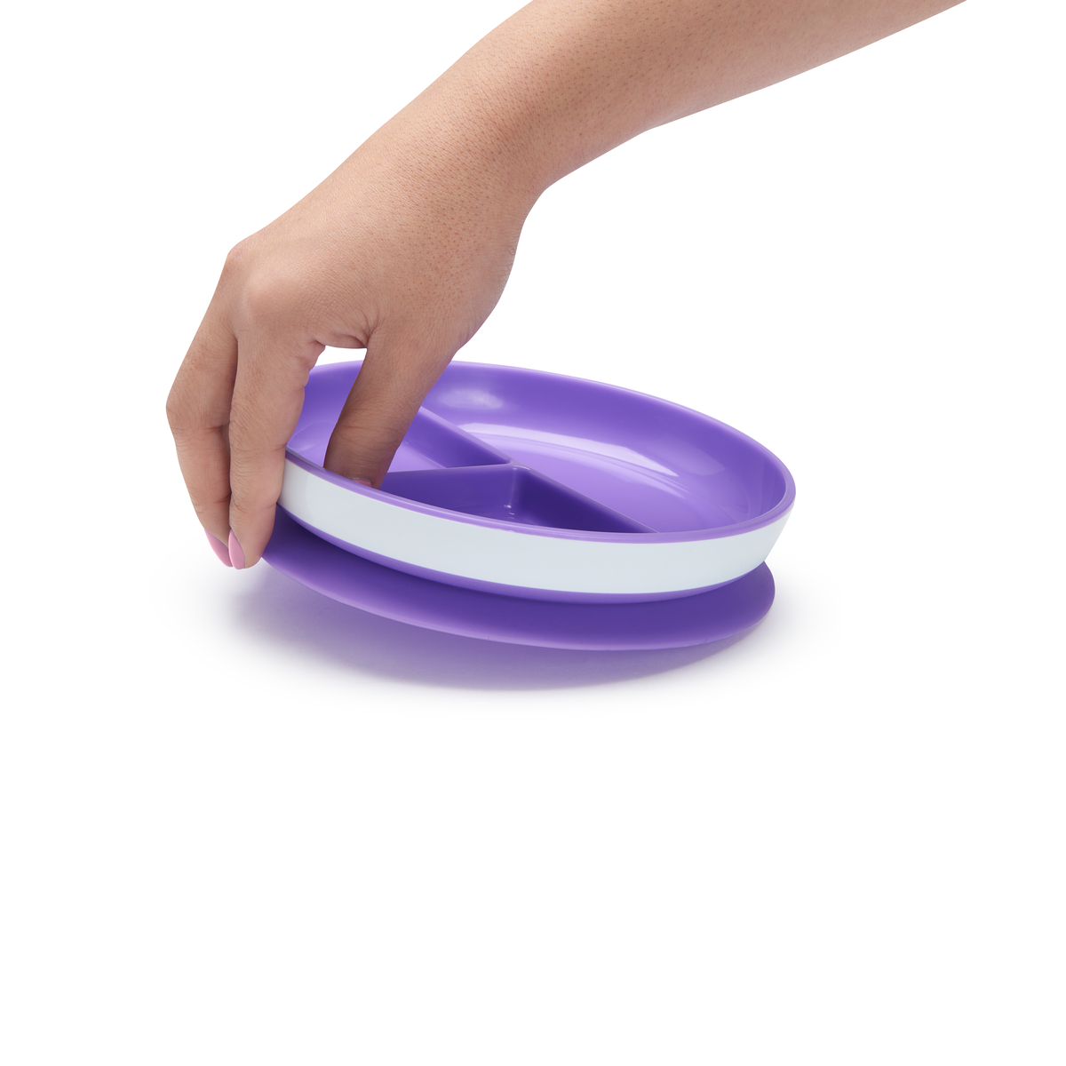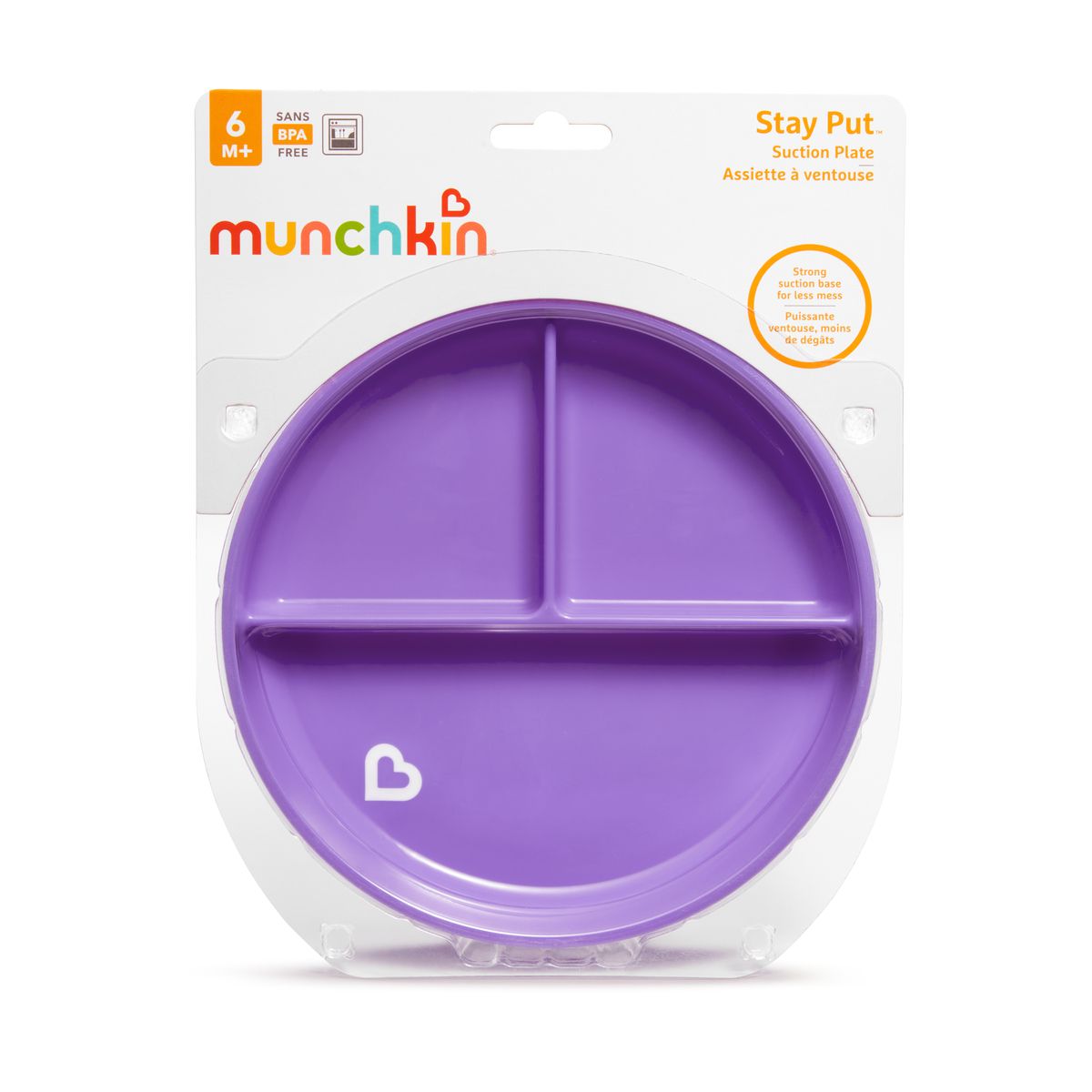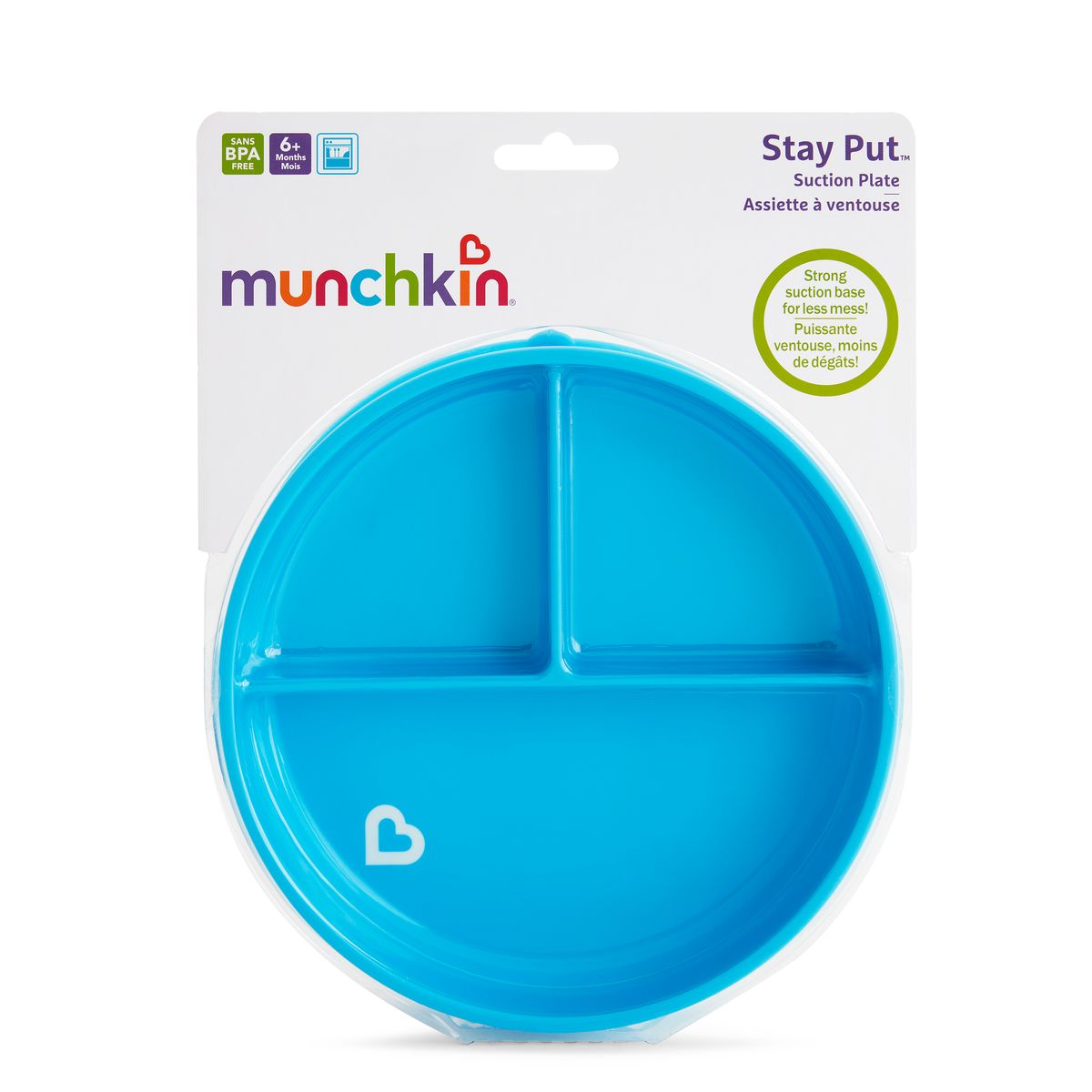 A Munchkin tapadókorongos rekeszes tányér segítségével egy kis rendszerezettséget vihet a baba önálló evési próbálkozásaiba. A három különböző rekeszben három különféle ételt tud szépen elkülönítve tálalni. A tányér erős tapadókorongja a legtöbb, sík felületen megtapad, a gyorskioldó fül pedig megkönnyíti a felnőttek számára az eltávolítást.