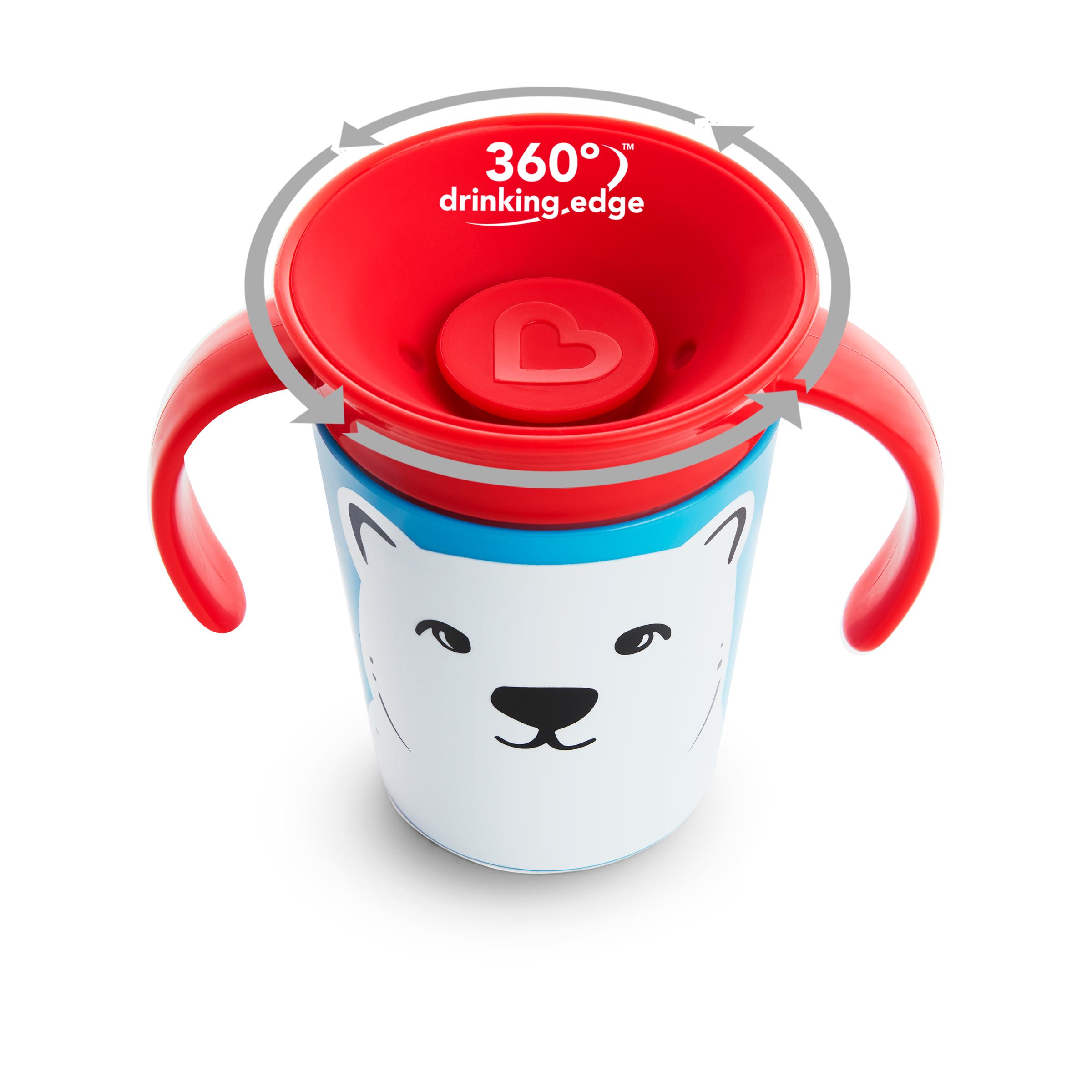Képzeljen el egy olyan világot, amelyben az italok egyáltalán nem lötyögnek ki, sem a gyermekre, sem a táskában. Ez nem egy csoda, ez a Munchkin Miracle® Cup 360°-os itatópohara.  A pohár pereméről bárhonnan ihat a gyermek, mint egy hagyományos pohárnál, ezáltal segíti a száj normál izomfejlődését. Speciális szelepes teteje használat után automatikusan visszazár, így nem kell tartani a szivárgástól. És mivel nincsen ivócsőr, szívószál, vagy extra alkatrészek, a Munchkin Miracle® Cup 360°-os itatópohár könnyen használható és tisztítható.
